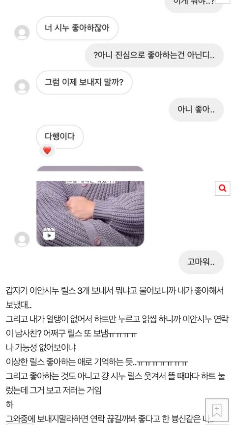 어제부터 이안시누 릴스만 계속 보내서 개빡쳤는데 시누님이 내 큐피드가 되는 거임??