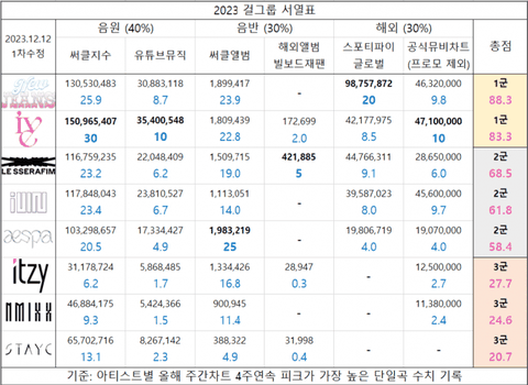 2023 4세대 걸그룹 서열표