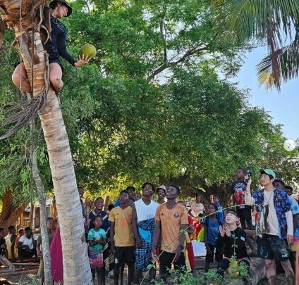 선주 집에 초대받아 야자수 나무 위에서 야자수 따서 나눠먹음