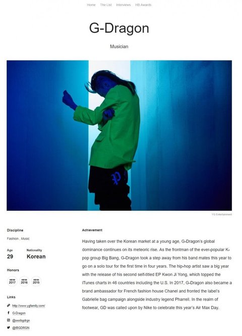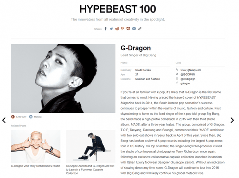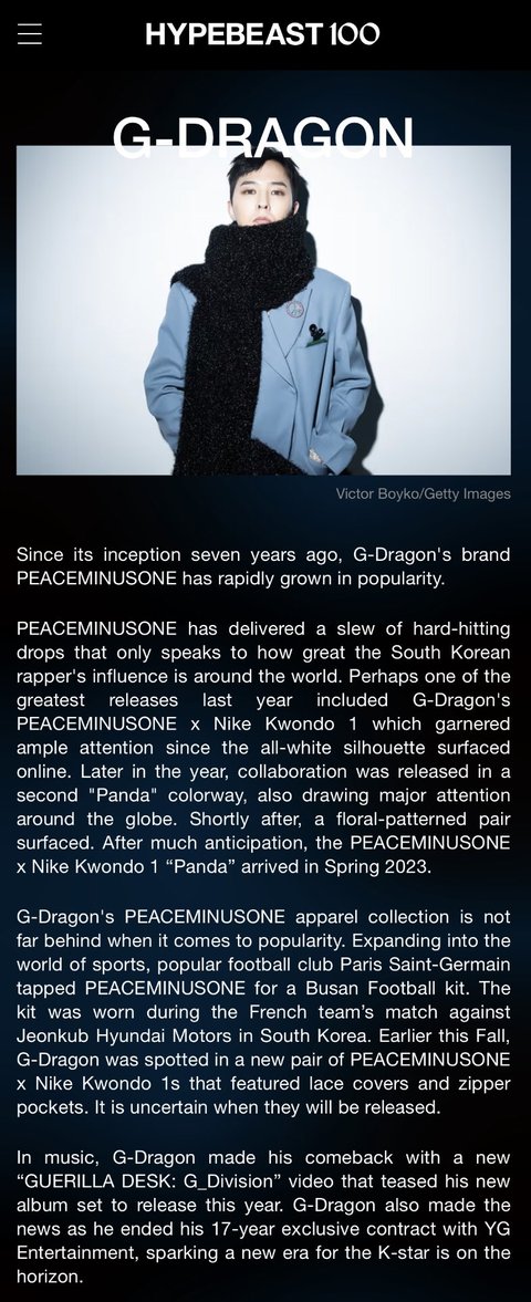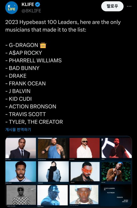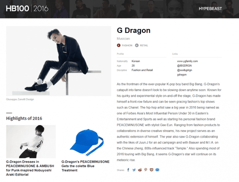 지디가 한국 연예인 중 유일하게 2023 HYPEBEAST 100인에 이름을 올림