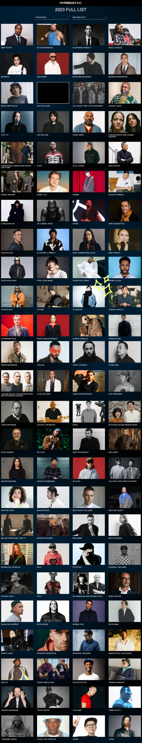 매년 올해를 빛낸 인물 HYPEBEAST100을 뽑는데