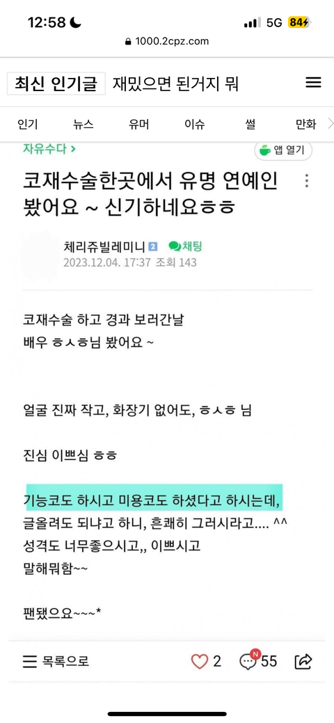 인증 하나도 없는 글을 믿어야하는 이유는? ㅠㅠㅠ 심지어 비염 수술한게 10월 말인데 12월이나 돼서 올라온 글을 ㅠㅠㅠ 그리고 어떤 연예인이 대체 일반인한테 기능코도 하고 미용코도 했어요~ 하고 떠벌리고 다니냐 ㅠㅠ