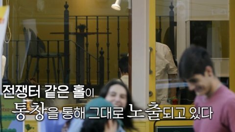 통창 앞에 다닥다닥 붙어 구경하는 사람들 때문에