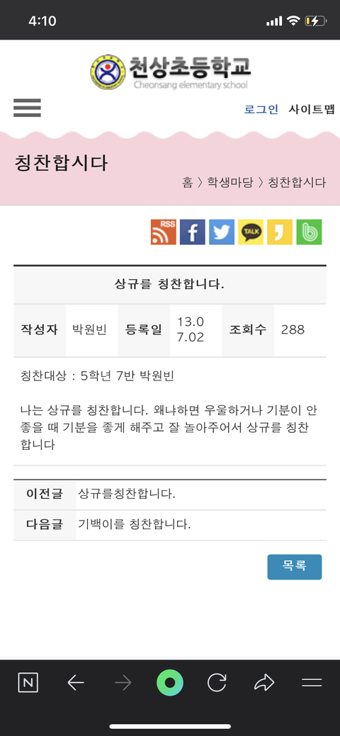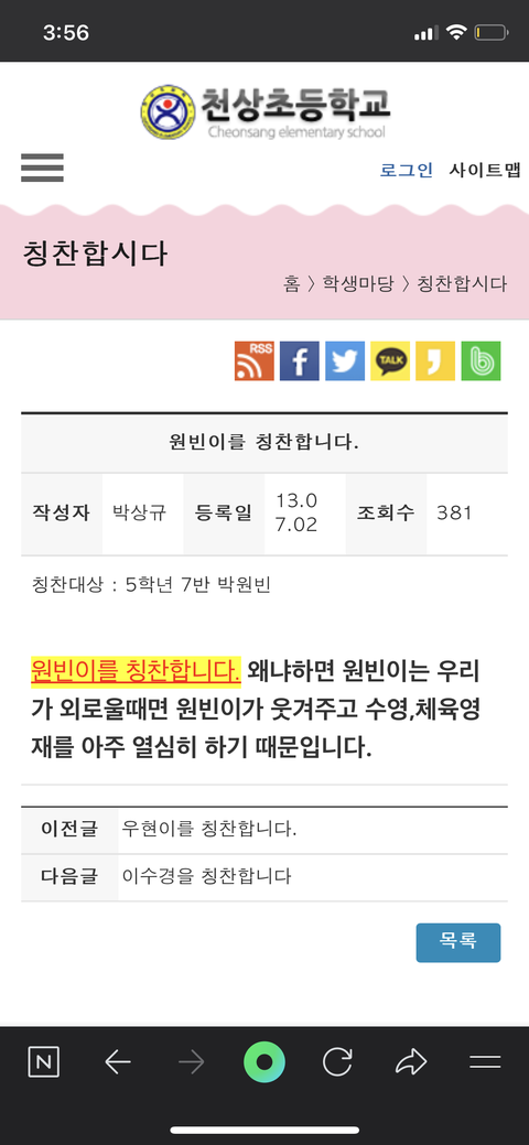 칭찬대상에 친구 이름 써야 되는데 자기 이름 쓴거 봐 ㅋㅋㅋㅋㅋㅋ