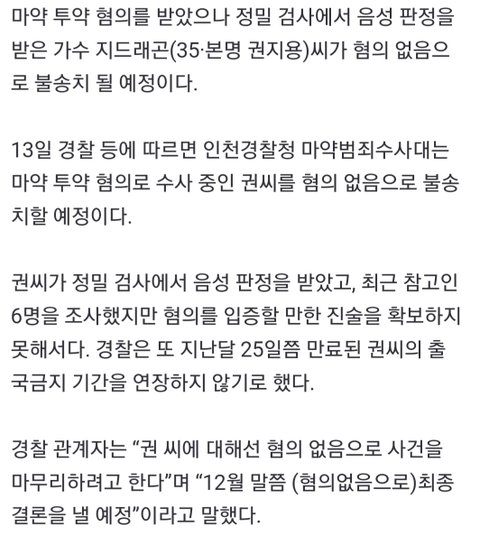 근데 이미 대마 전적이 있는데 아직도 팬인사람들이 신기하다 그럼 뭐하냐 지디는 여자끼고 술마시러다니는데 돈도많고 즐길거 다즐기고 룸다니고 할동안 팬들은 여기저기 쉴드치는게 불쌍함 애초에 룸을 안다녔으면 이런 마약사건에 안엮였을거아냐 덕분에 같이 갔던 연예인들 참고인조사하고 룸녀들 조사하고 그게뭐냐 안갔다고 구라나 치지말지 어차피 다 걸리는데