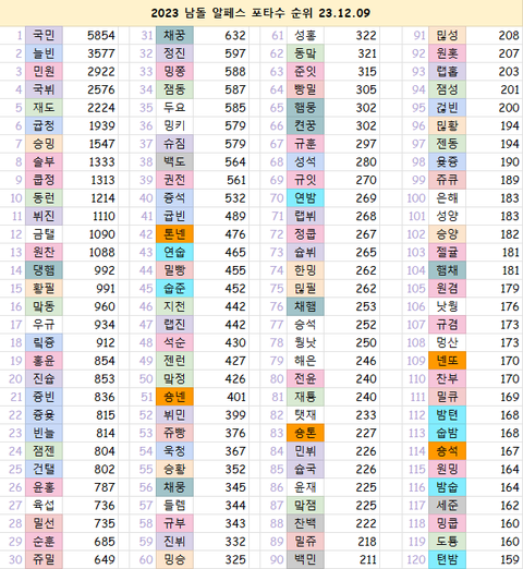 이거 올해 알페스 순위라는데 놀라운점