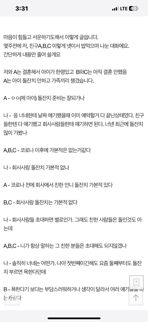 어휴....진짜 다른 분 말대로 친구분들 보살이네요 나 같음 그냥 님 손절했을듯;;;; 서운할 것도 많음 ㅎㅎㅎ