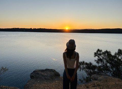 최근에 휴가로 호주 호수에 간 다니엘