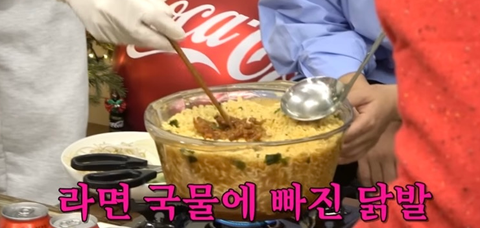 핑계고에서 유연석이 극찬했던 닭발 라면을 끓여 먹어보기로 함