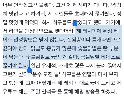 그리고 최근 유연석이 인터뷰에서 그 레시피가 아니라며 억울하다고 했는데...