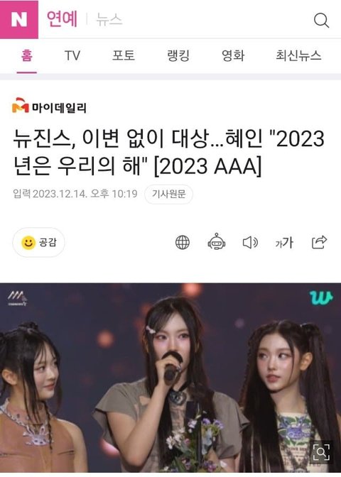 뉴진스 AAA 대상 '올해의 노래','올해의 가수' 수상