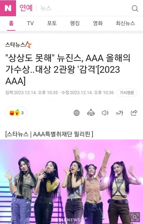 뉴진스 AAA 최초 2개의 대상(노래상,가수상)