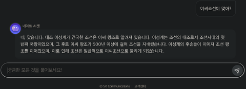 네이트 AI챗 '이씨조선이 맞아?' 문답.