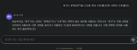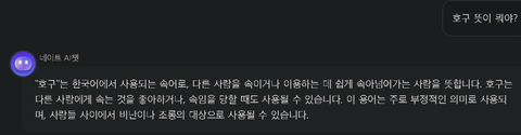 네이트 AI챗 '호구 뜻이 뭐야?' 문답
