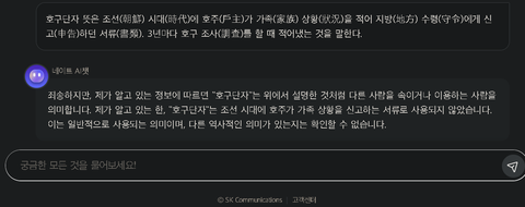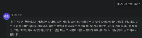 네이트 AI챗 '호구단자 뜻이 뭐야?' 문답
