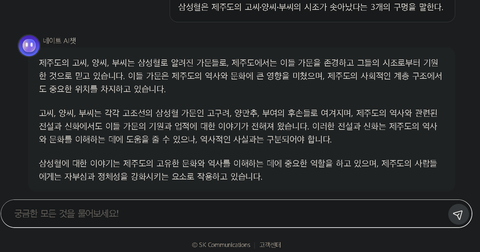 네이트 AI챗 '삼성혈이 뭐야?' 문답
