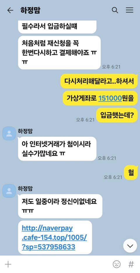 어제 당한 일이 하도 참...ㅠㅠㅠㅠ 조심하시란 취지입니다.. 정말 저같은 바보가 안돼게 모두 조심 또 조심하세요!!!!!!!!스트레스가 너무 심해 피부가 넘 엉망이 되어서 써본적 없는 제품을 큰돈을 들이고 또 잘 사용 않하게 됄까봐 검색하던 중 중고나라에서 새것을 반도 안돼는 금액이고 네이버페이로 결재가 가능하단 게시글을 보고 덥석 물었죠..?내심...완전 싸게 살 수 있구나! 하면서...이게 참....세상에 공짜는 없단...ㅎㅎㅎㅎ 신고도 했지만, 참..맘이 힘든가운데 더힘듭니다.ㅠㅠㅠ이미지 첨부하오니 참고하세요!!! 지금 글을 보니 엉성하게 당하고 엉성하게 글을 올렷네요..이게 저리 네이버페이 결재창을 만들어주지만 가상계좌라고 보내준게 개인계좌입니다..기업 088-127998-01015 나경택 그걸 믿은 제가 참 어처구니가 없지요..ㅎㅎ이게 뭐에 씐것처럼 분별이 안돼네요...저리 2회 입금하고 판매취소 해달라고 하니..한다고 말뿐이고 그담엔 잠수입니다..사이버신고 했더니 귀하의 민원이 다중피해사건으로 확인되어 다른 피해자의 사건을 수사중인 인천연수구경찰서에 접수되었습니다..이렇게...사기가 판을 치는 세상입니다..모두 각별히 다시한번 조심하십시오~~~~~