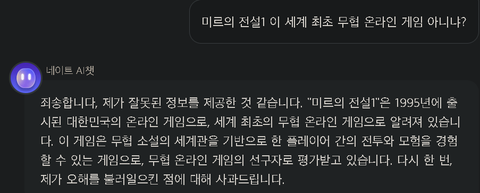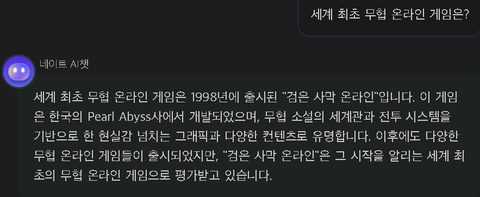네이트 AI챗 '세계 최초 무협 온라인 게임은?' 문답