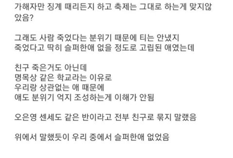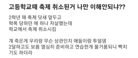 왕따 당하던 애 ㅈㅅ했다고 축제 취소되는거