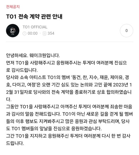 ㅇㅇ... 웨이크원이 데려온 이후로 방치만 하다가 해체시킴