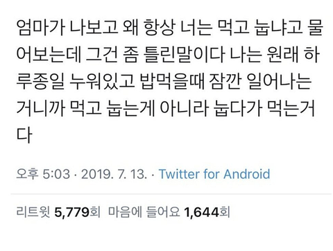 먹자마자 눕는 사람 무조건 공감