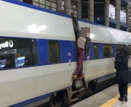 한 외국인 남성이 문을 열어주지 않는다는 이유로 달리는 KTX 열차에 매달리는 일이 발생했다.