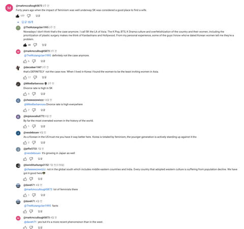 대댓:1(요약해서) 과도한 성형수술 kpop 에 대한 신격화는 그저 카다시안과 헐리우드와 다를바 없고 개인적으로 아는 한녀와 데이트한 남자들을 통해 들은 것으로