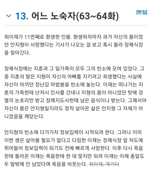 웹툰상에선 시한부라 죽게됨
