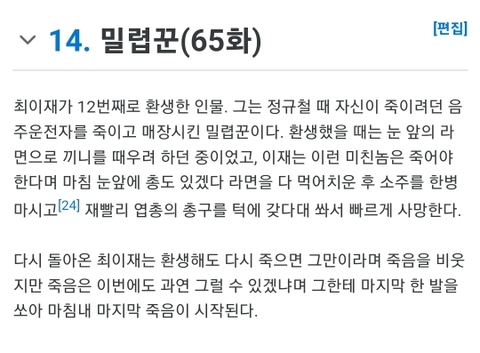웹툰에선 연쇄살인마설정이였는데