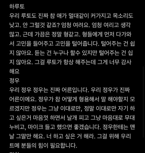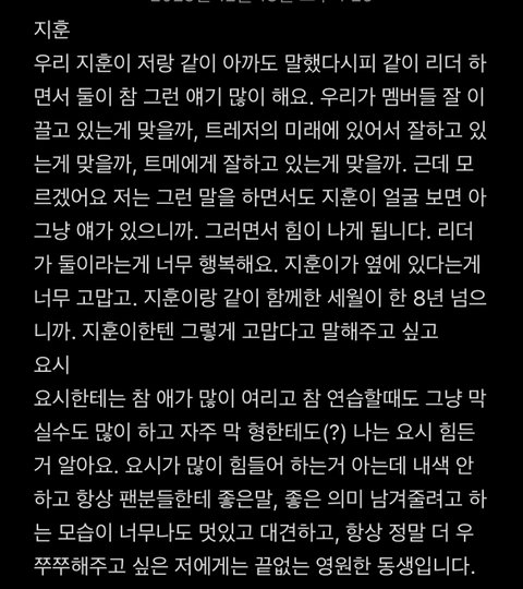 특히 지훈 준규 요시 도영 정환이한테 그리고 트메한테 말할때 너무 감동이었음