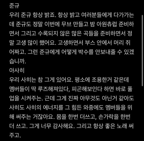 멤버들이 사이 좋은게 너무 느껴지고 애정이 넘쳐나는게 눈에 보였음