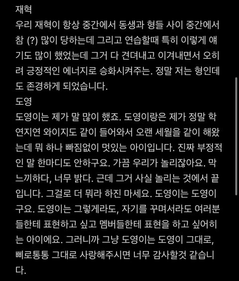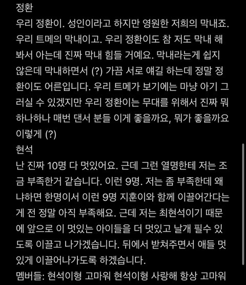 현석이가 멤버들에게 한마디씩 해줬는데 보면서 눈물 흘렸다