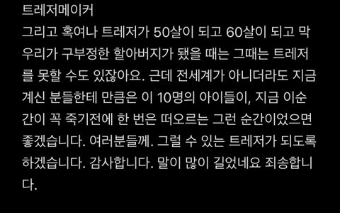 너무 감동이네 리더맡형인 현석이 소감보고 울었네요 사이도너무좋고 평생트메할수밖에없네요 응원할게 트레저멤버들 화팅!