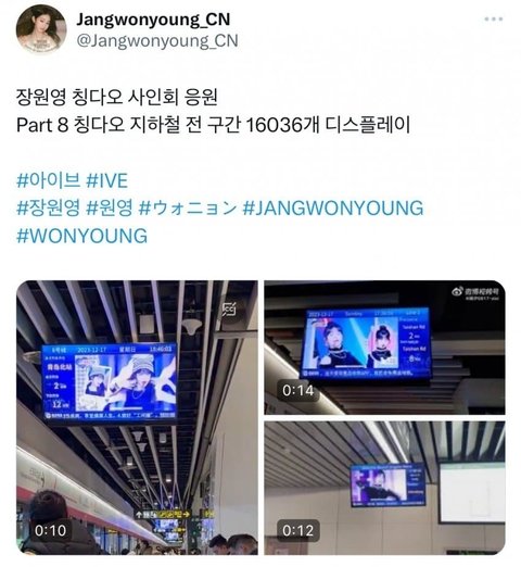 소문은 들었지만 중국 장원영 팬들 어마무시하더라 버스 대절해서 중국 각지에서 올라오고 지하철 광고만 만6천개 ㄷㄷㄷㄷㄷ 천단위 광고는 들어봤어도 만단위는