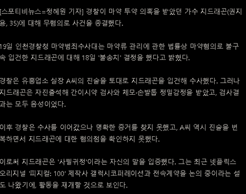 G드래곤, 마약 누명 벗었다…경찰, '무혐의' 종결