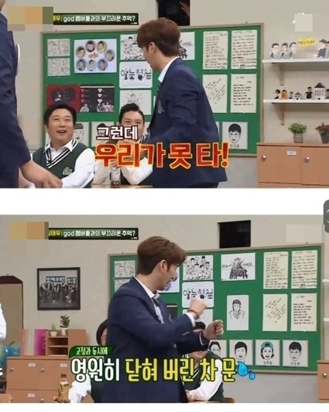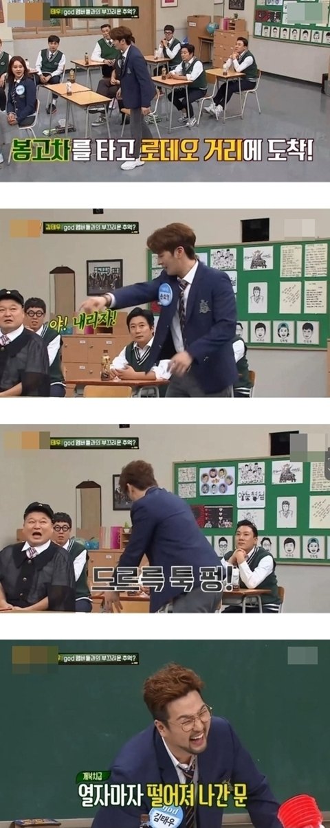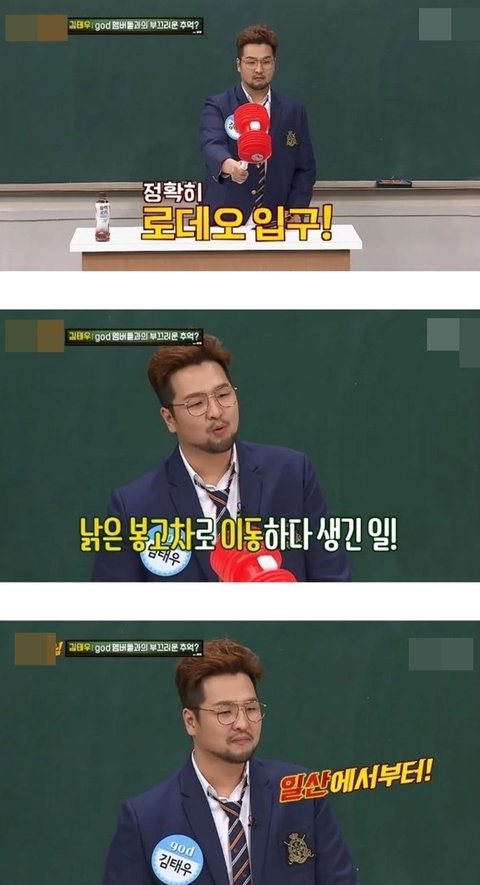 그 당시 말랐던 김태우는 몸을 꾸겨 넣어서 창문으로 차를 탐