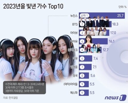 우리나라에서 가장 권위있다는 갤럽에서 혼자만 못드는데 왜 그동안 잘나가는 척 하면서 다른 걸그룹들 까셨을까? 뉴진스 아이브 에스파 여자 아이들