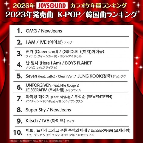 2023년 일본 kpop 노래방 순위