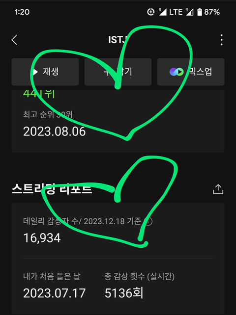 간만의 스밍인증...