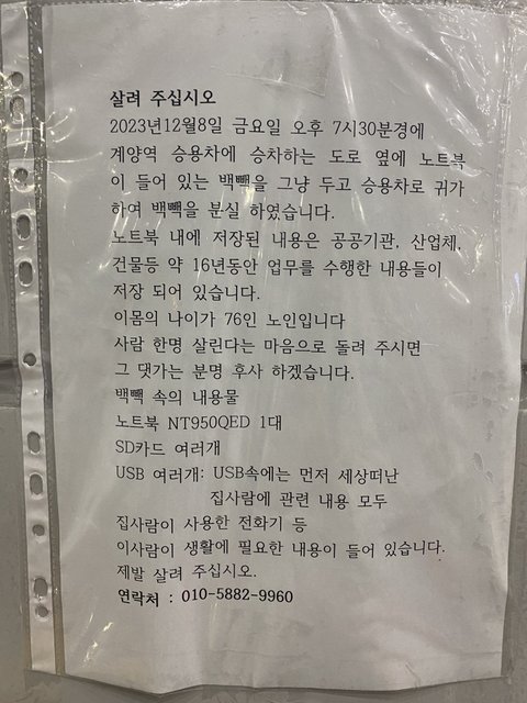 +찾으셨대요!!ㅠ) 계양역 분실 사건 널리 알려주세요