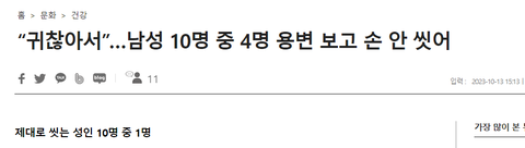 게다가 손도 안씻고 나오는사람들이 태반이라며 으윽 그걸로 뭐 먹고 일하고 여친하고 손잡고 스킨십하고 으ㅋㅋㅋㅋㅋ 제발 너랑 남을 위해서 뒷처리좀 잘하고 손도 좀 잘씻었으면 좋겠음 어려운것도 아닐텐데 왜그렇게 더러운거야 대체