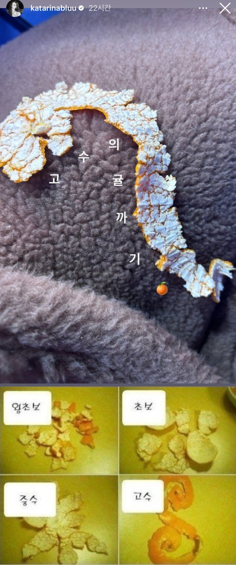 스토리가 올라오기 며칠 전에도 카리나팬들은 귤시즌이라며 트위터에서 저짤과 함께 카리나 귤까기 고수라면서 놀았음