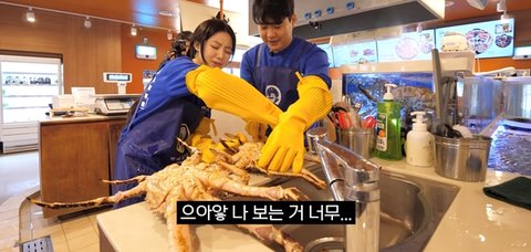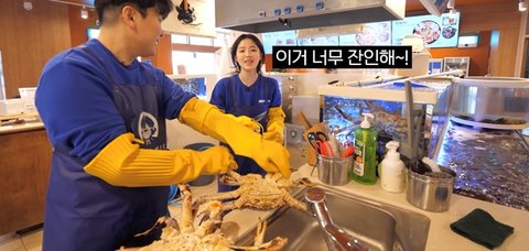 킹크랩 자르더니 소리가 너무 힐링 된대