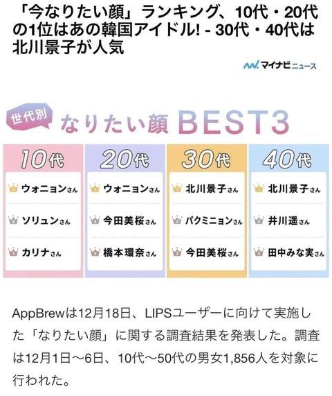일본 여성들사이에 되고싶어하는 여자연예인 설문조사가 실시되었는데