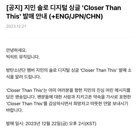 팬송이라 그런지 뮤비도 티저도 없고 공지도 하루전날줘서 약간 당황스럽지만ㅋㅋㅋ 그래도 지민이 입대전 선물이라 개같이 기다림