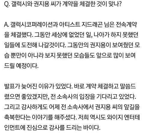 yg가 먼저 입장 발표가 있어야 가능한가보네