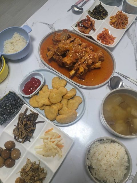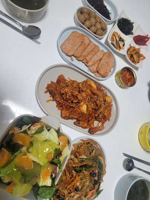 부랴부랴 초스피드로 대충 휘리릭 차렸어요.