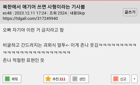 애기어 쓰면 최대 사형이라는 북한