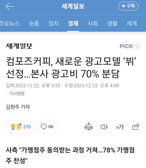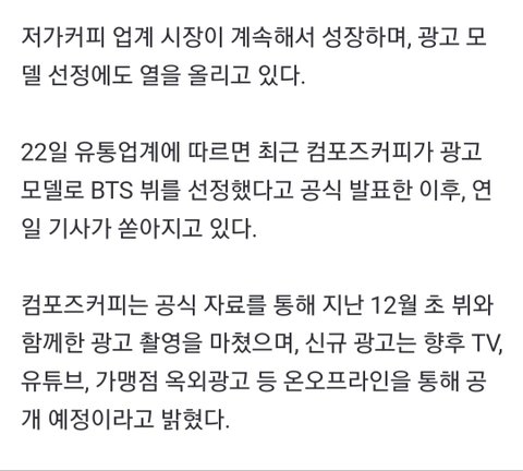 방탄 뷔 컴포즈 모델 선정에 대한 점주들 입장