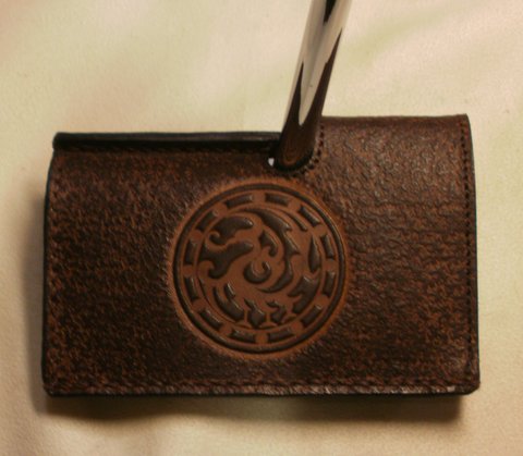 가죽에 스탬핑하고 천연 염색하여 제작한 핸드메이드 골프 헤드 가죽 커버입니다.(마디샤가죽공예)